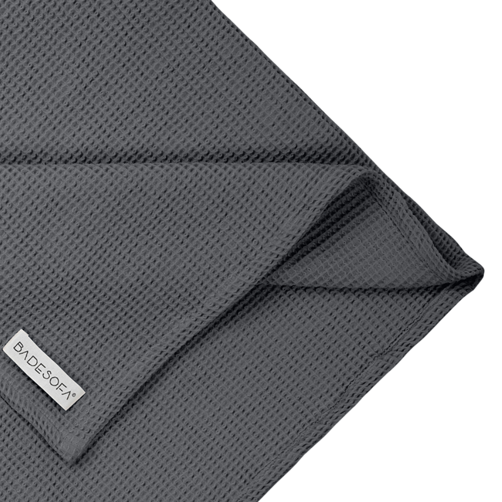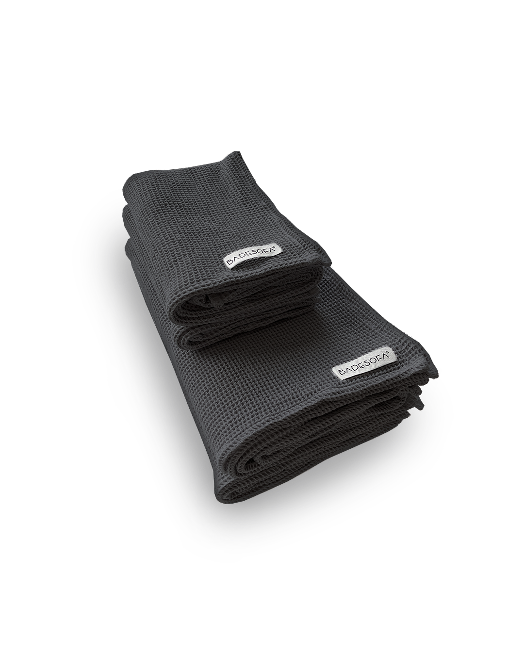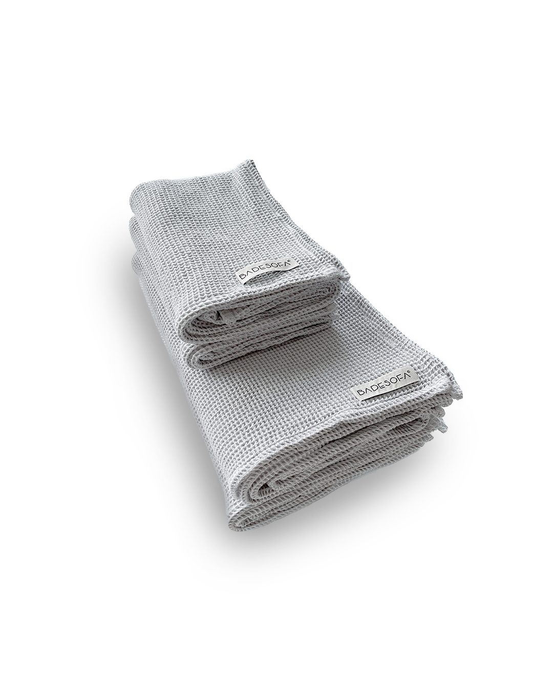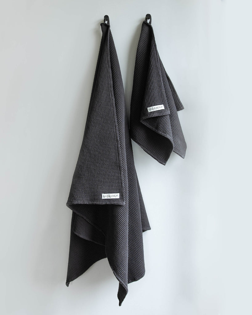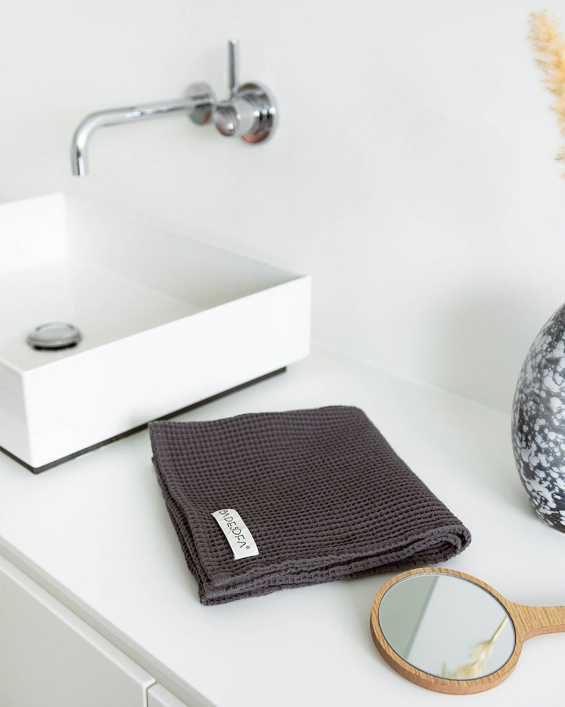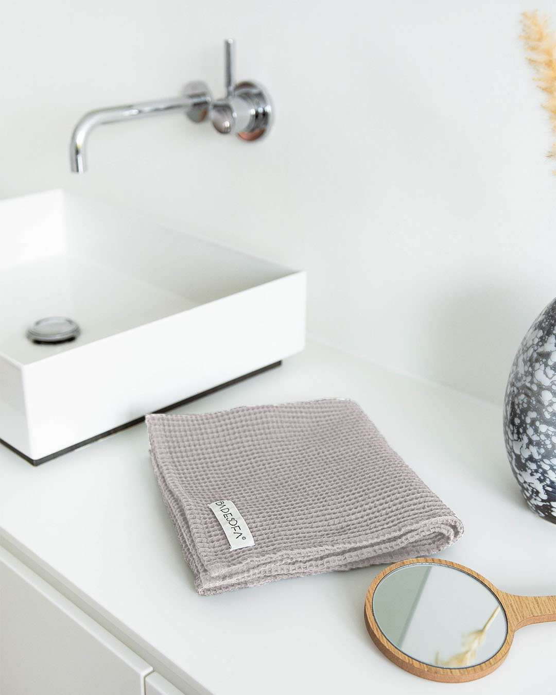 Elegant waffle towel set, made in Portugal from 100% GOTS-certified organic cotton — soft, lightweight, and absorbent.