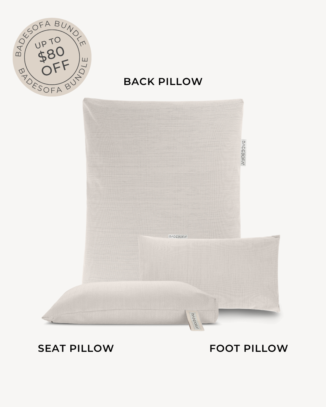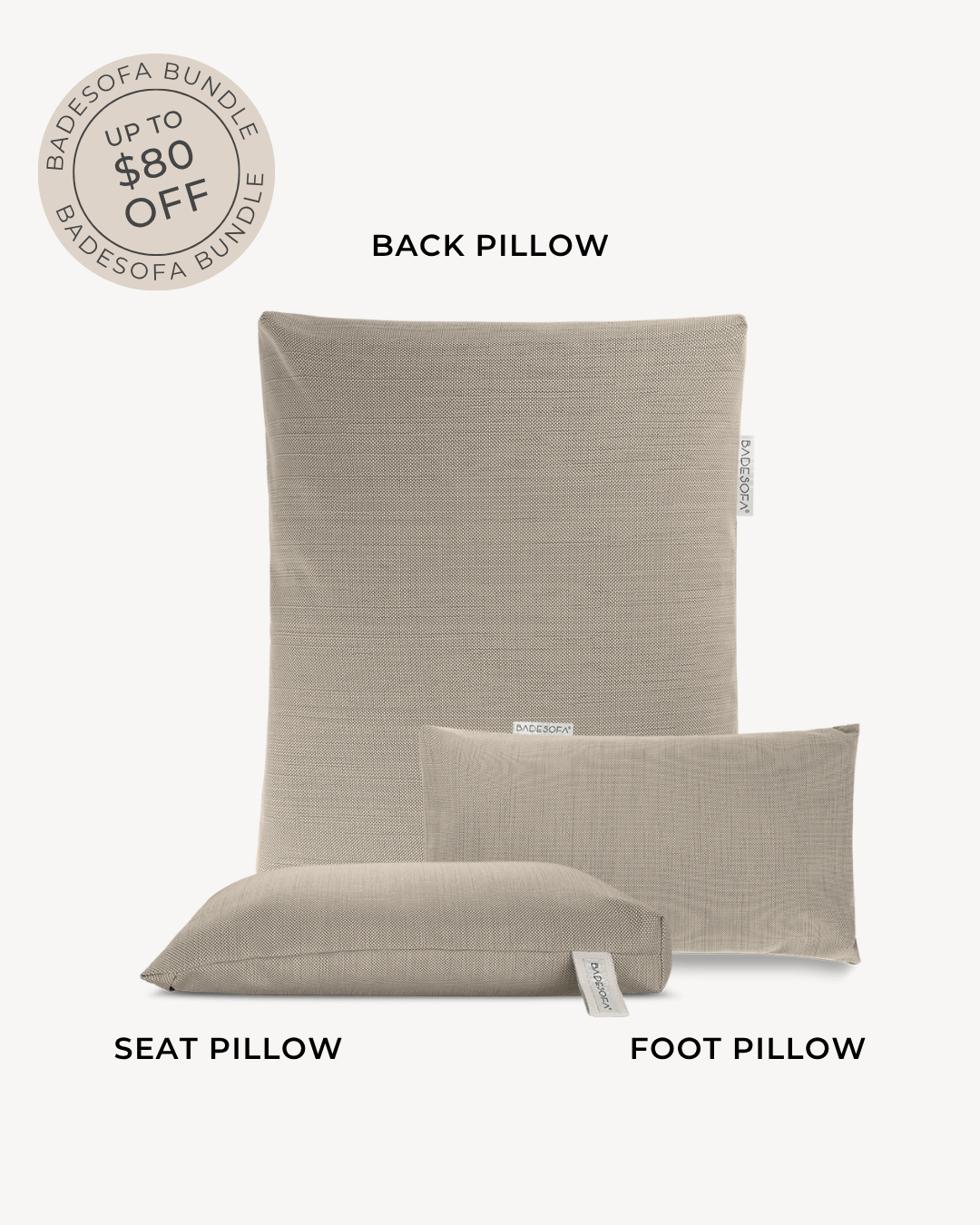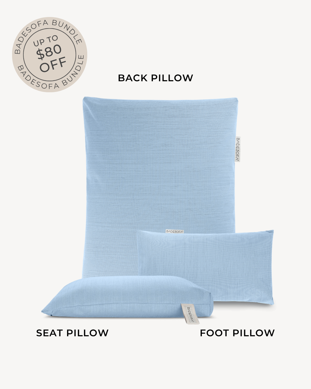 - The Full Bath Sofa Set includes: 1 Back Bath Pillow (Medium or Large), 1 Foot Bath Pillow, and 1 Seat Bath Pillow
