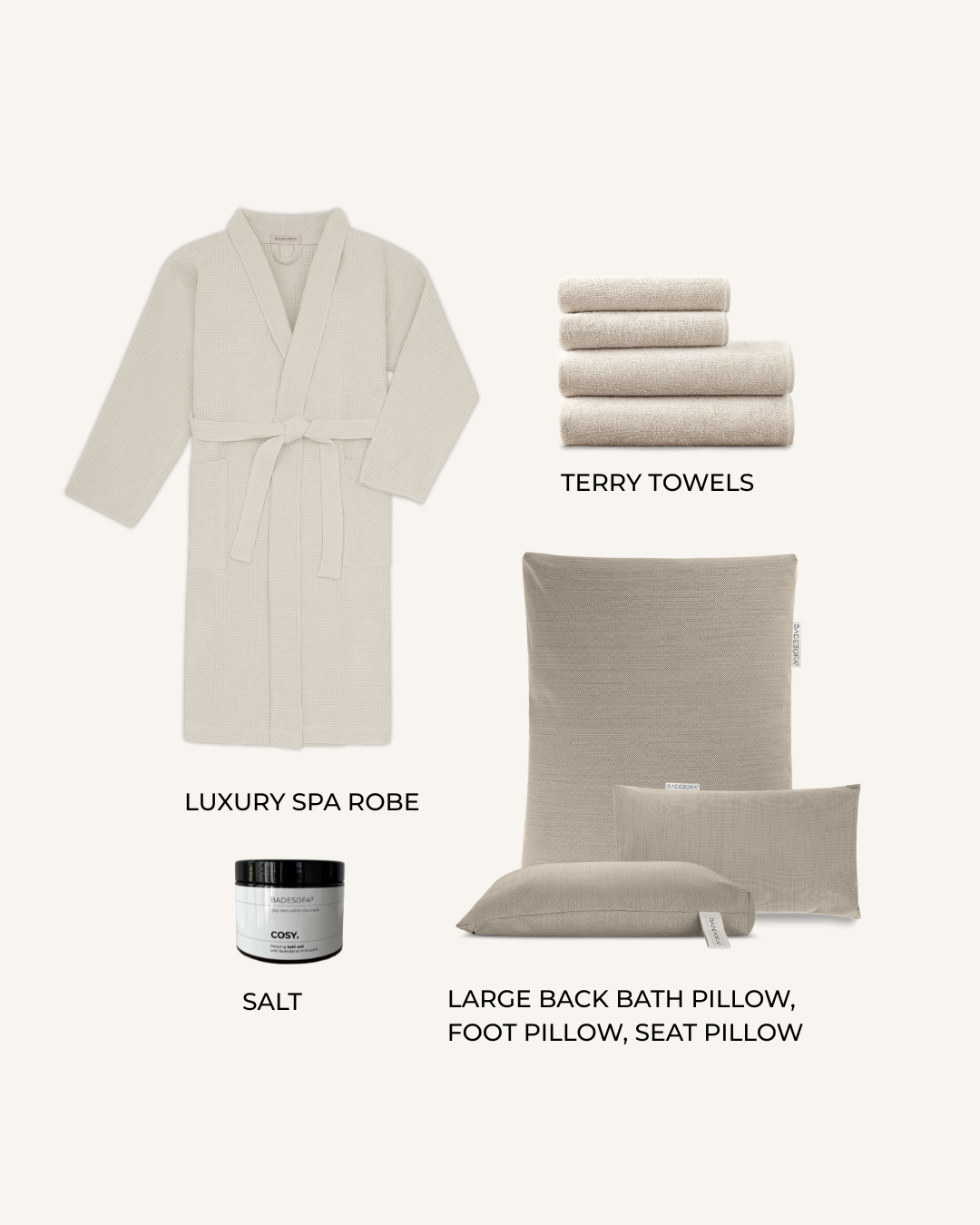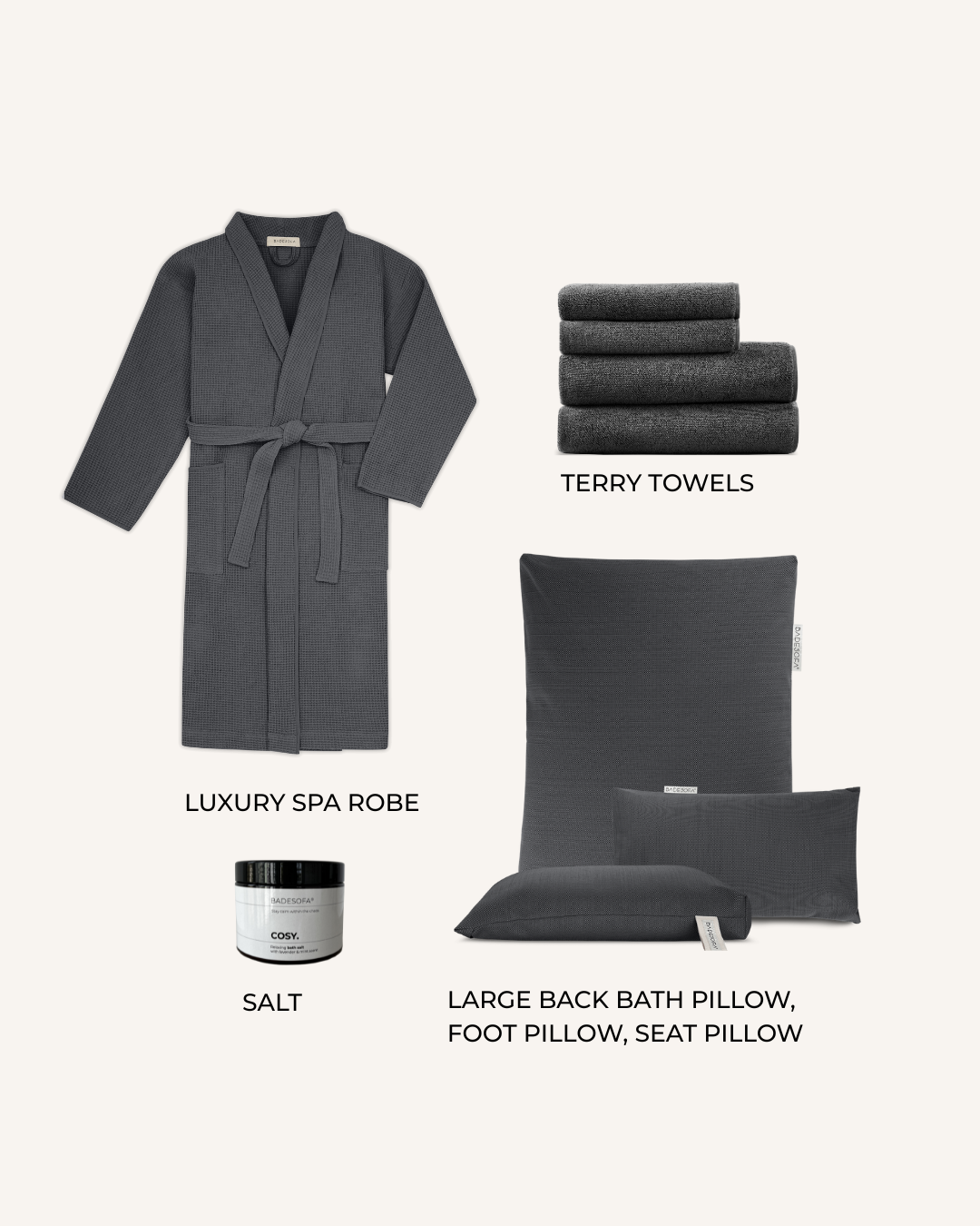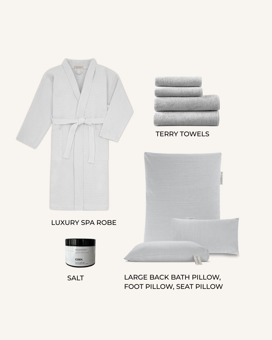 The ultimate bath set with all the essentials and accessories for complete at-home relaxation from start to finish.