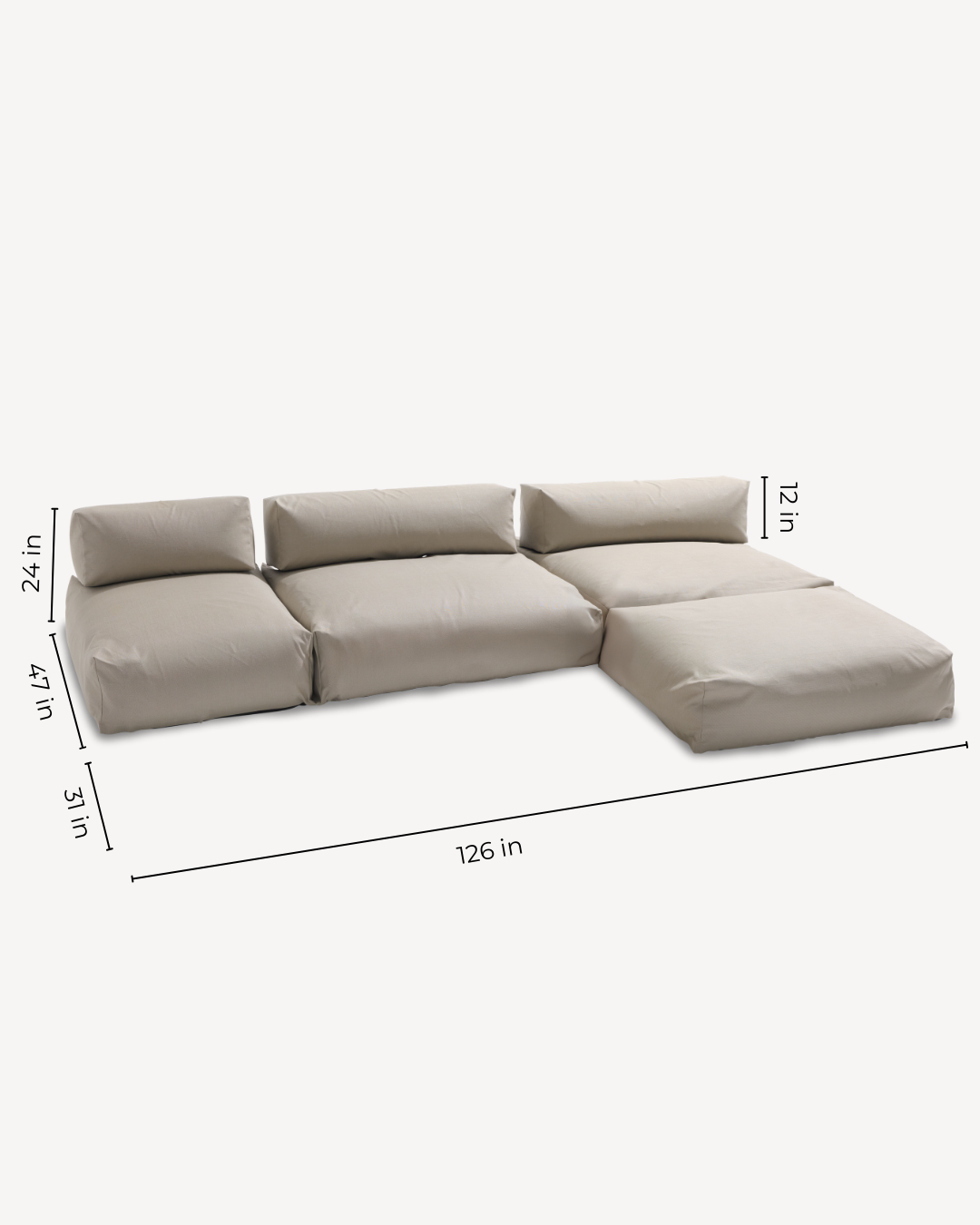 10.5ft Set: 126" W x 79" D x 24" H