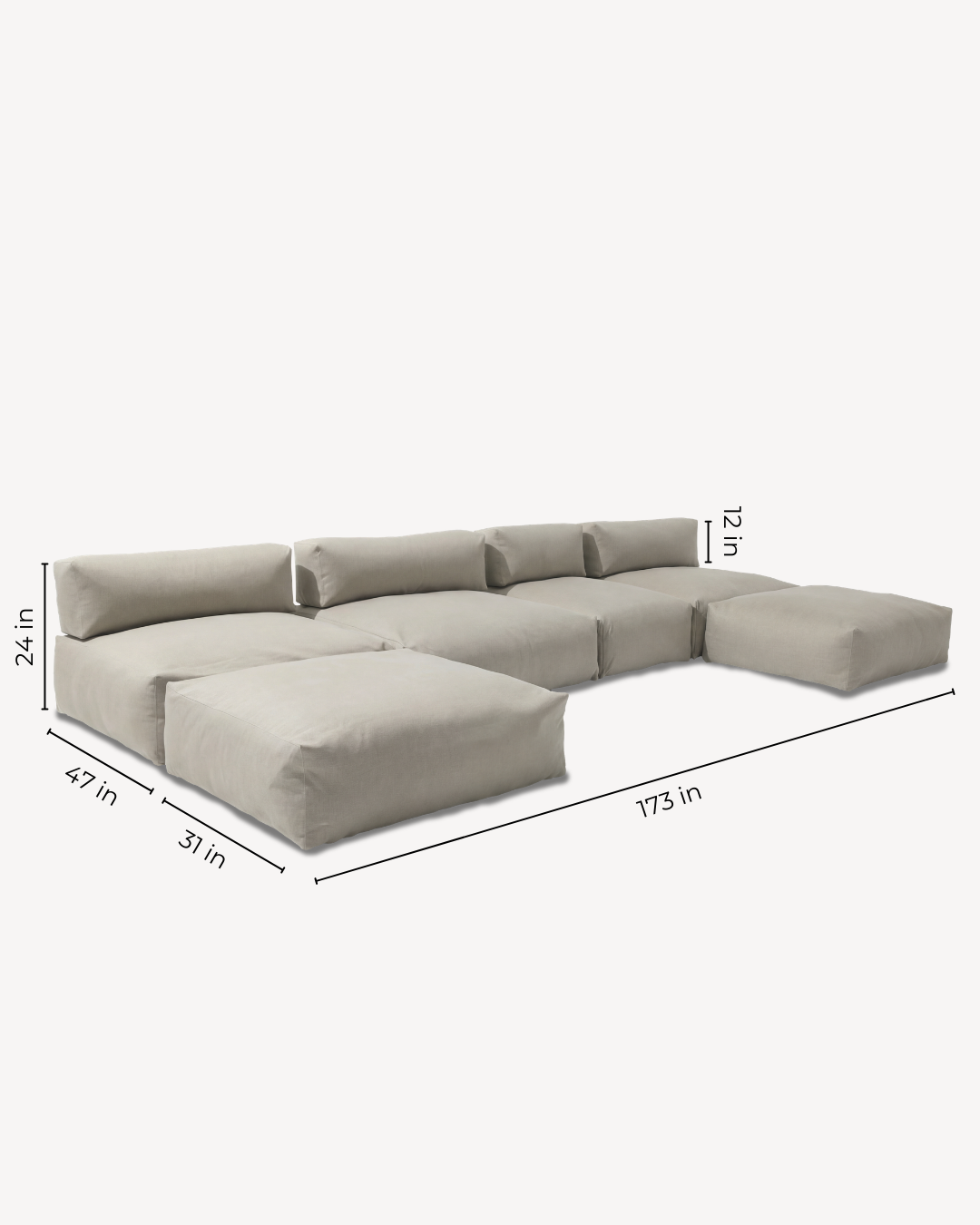 Built from our Single and Double loungers. Arrange as a sectional or separate into individual loungers — on water or on land.