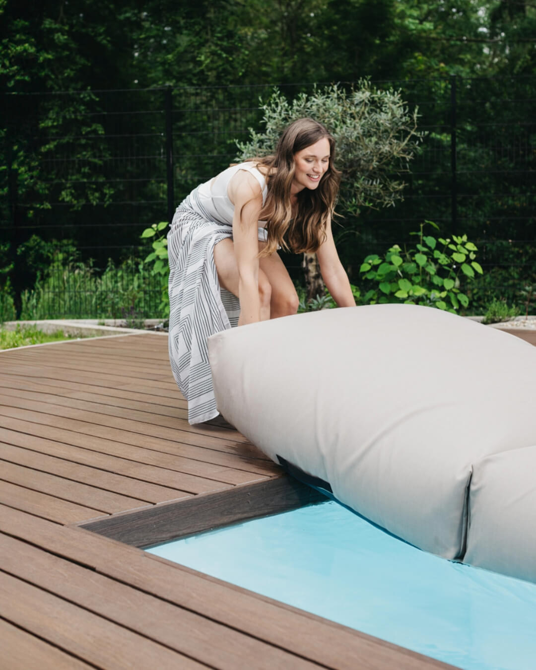 Take POOLSOFA out of the pool when not in use. Place the back rest next to the mattress and flip it for even drying.