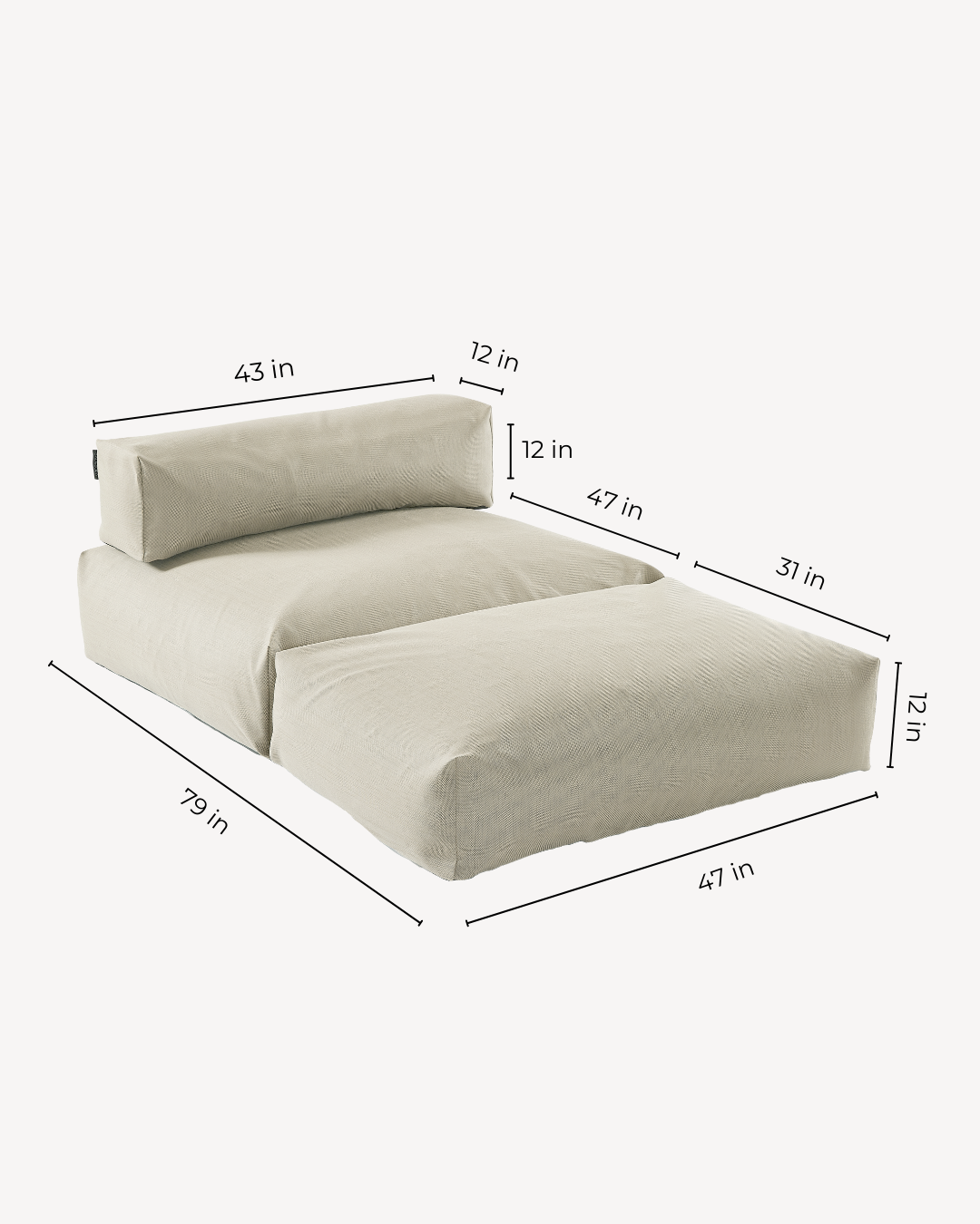 Double Lounger: 47" W x 79" L x 12" H