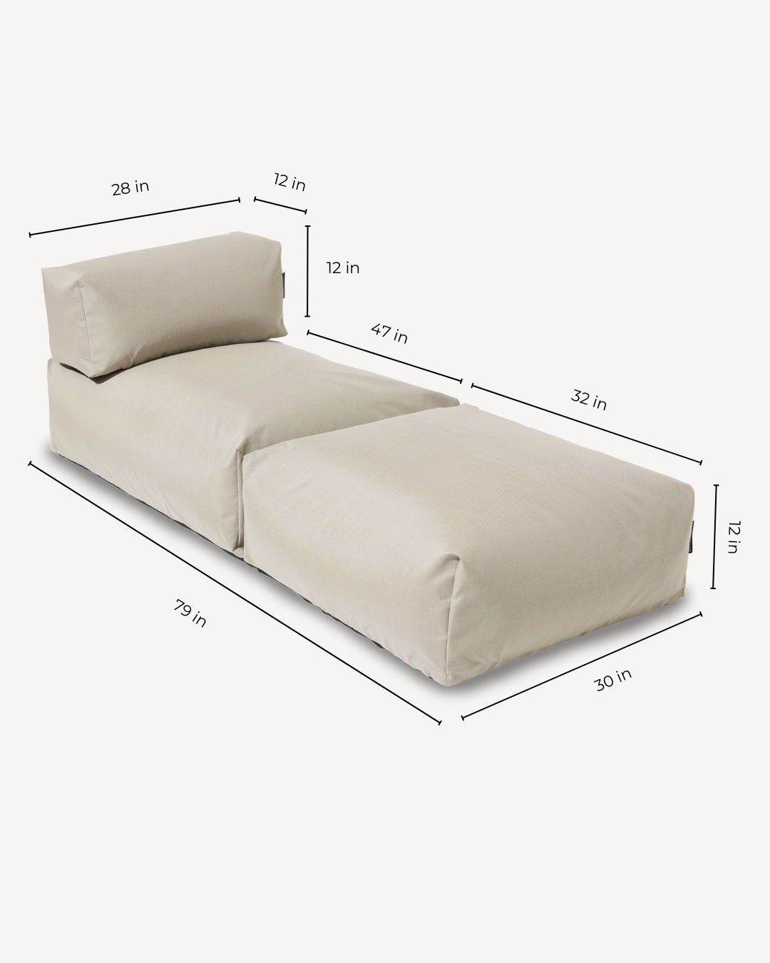 Single Lounger: 30" W x 79" L x 12" H